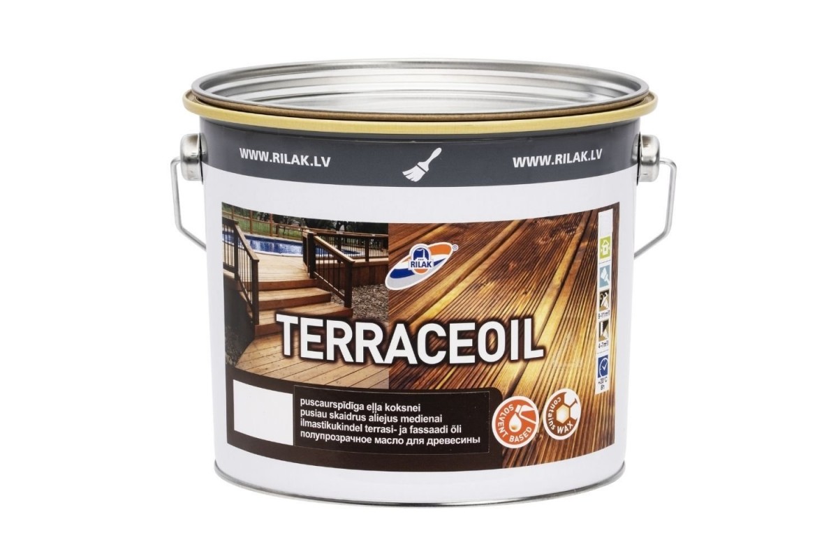 Поверхні, що експлуатуються в атмосферних умовах , рекомендується оновлювати маслом TERRACEOIL періодично ( як мінімум, щорічно )